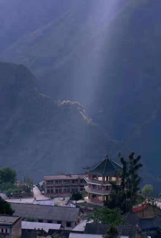 這棟八角樓有著觀賞的最佳視野。登上八角樓,便可遙望碧羅雪山,而眼前的怒江大峽谷綺麗幽深,宛如一道美麗的傷痕,從高黎貢山、碧羅雪山兩山之中,洶涌南下。