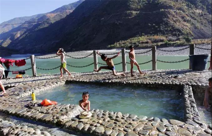從小沙壩服務(wù)區(qū)往北4公里,便可到達(dá)登埂溫泉。