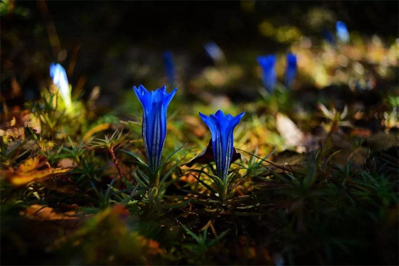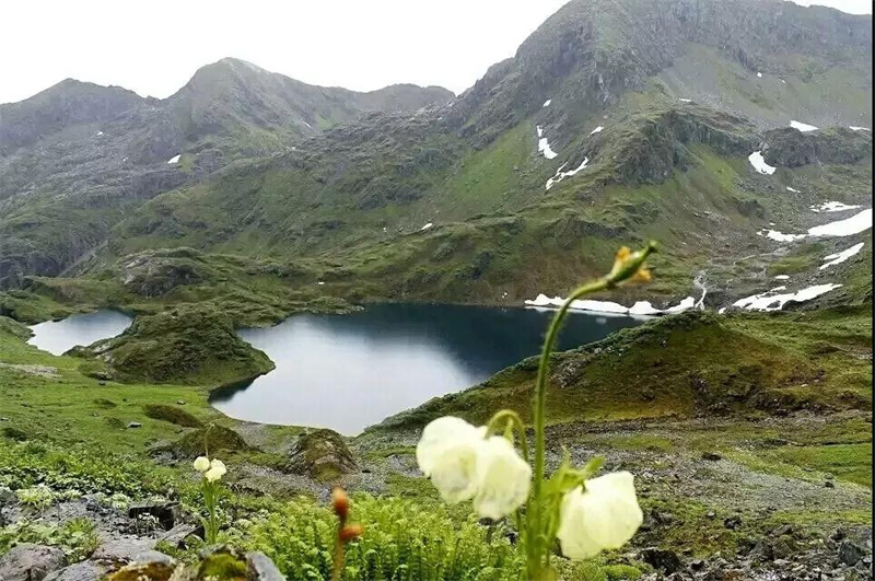 春夏之交,氣溫逐漸升高,雪山上冰消雪融,雪退到哪里,花就開到哪里,從山上到湖邊,到處是一片花的海洋,清碧透亮的湖水,映照著無邊的原始森林和空闊的藍天,最具特色的是高山杜鵑,它們盤根錯節(jié)地葡伏生長,密密麻麻,殘雪還掛在枝葉間就把鮮花怒放,遠遠看去就象燃燒的火焰在狂風(fēng)中飄搖。