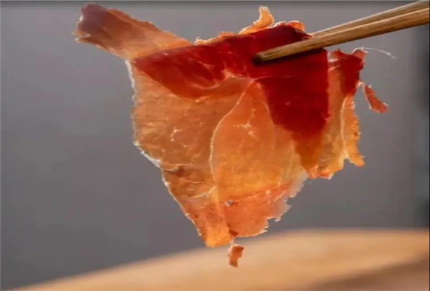 手抓飯中必不可少的老窩火腿,色澤通潤(rùn)透明,肉肥而不膩,味道咸香適宜。